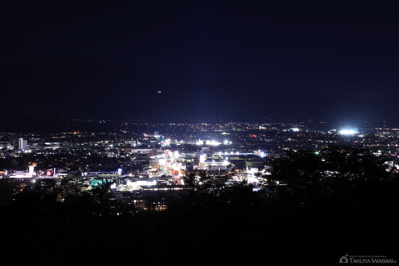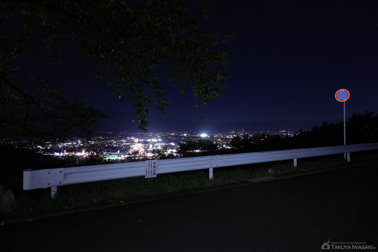 駐車場から1~2分ほど歩いた場所に展望台があり、福島市内を中心とした夜景が広がります。