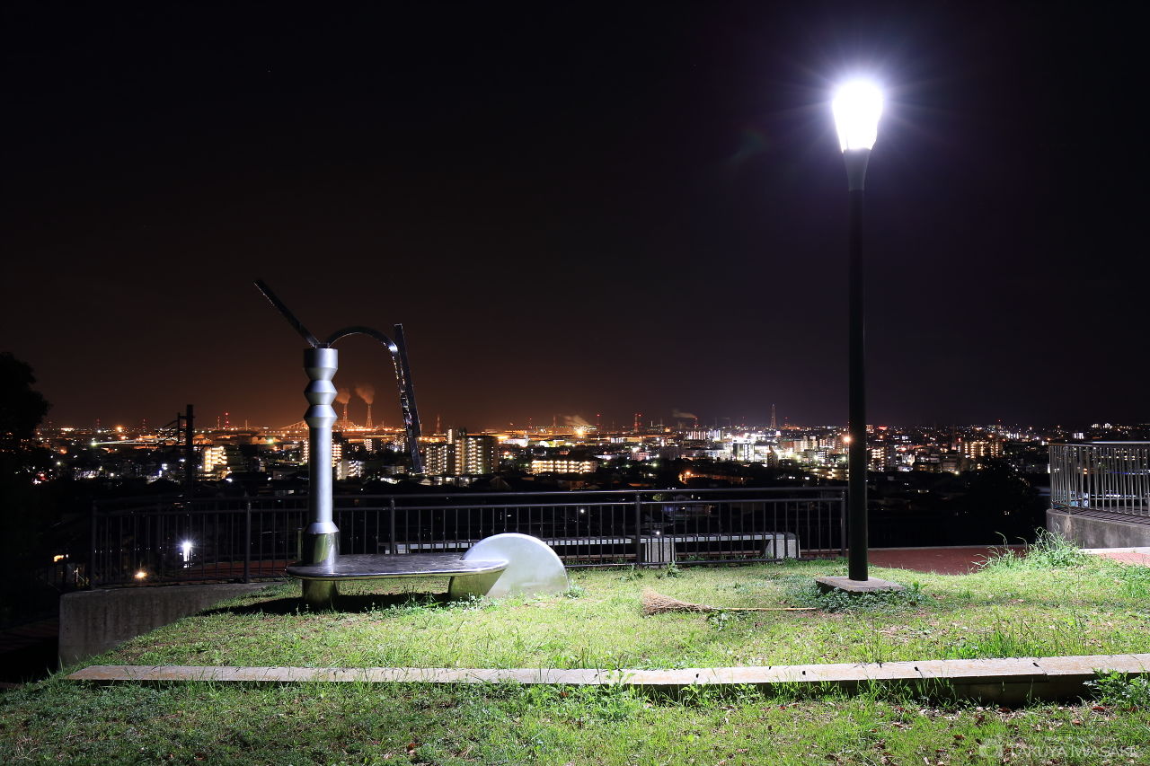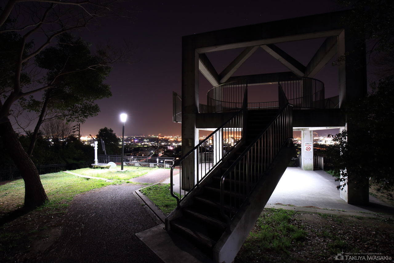 新興住宅地に隣接する小さな公園。公園自体からは夜景は見えませんが、公園の裏手にある道路や階段付近から常滑市の夜景が観賞できます。車内からも夜景が観賞できる...