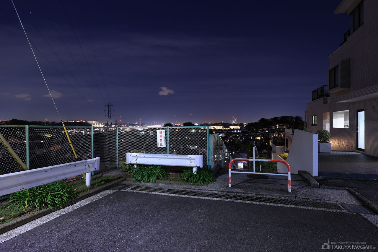 西原第二公園の名称で紹介していますが、公園内からの眺望は視界が悪く、公園横の道路の階段付近がビューポイントとなります。階段付近からは日吉本町駅方面の夜景が広範囲に見渡せ、遠くには横浜ベイブリッジも確認できます。とはいえ、夜景自体の規模は小さいため、あえて遠方から訪れるような場所では無いと思います。