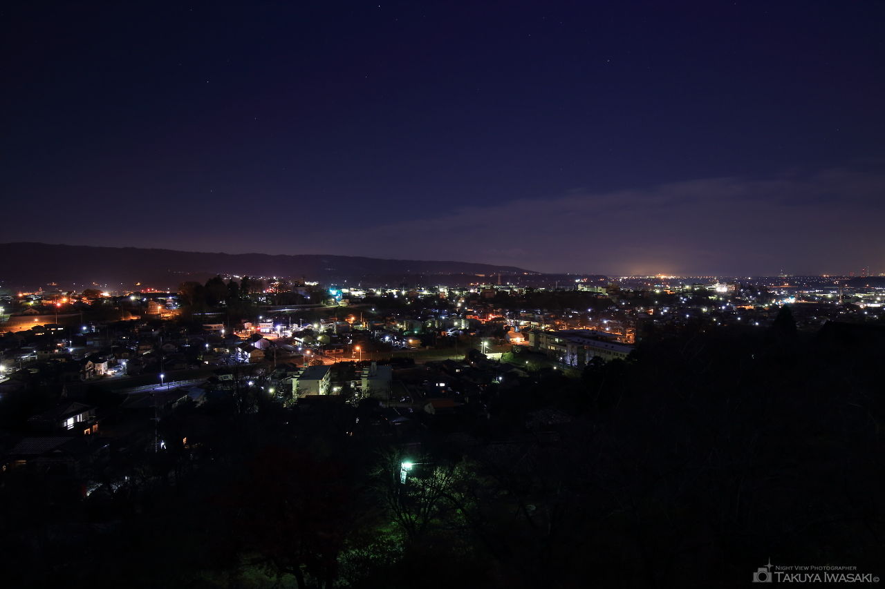 夜景スポットは2ヶ所あり、1つは駐車場から舗装された道を3分程度道なりに歩くと展望デッキがあり、ここから常磐太田市の夜景が見渡せます。市街地と近いことから街明かりも十分にあり、見応えのある夜景が観賞できます。もう1つは駐車場から西方向に歩いた展望台となりますが、視界は展望デッキの方が広くなります。