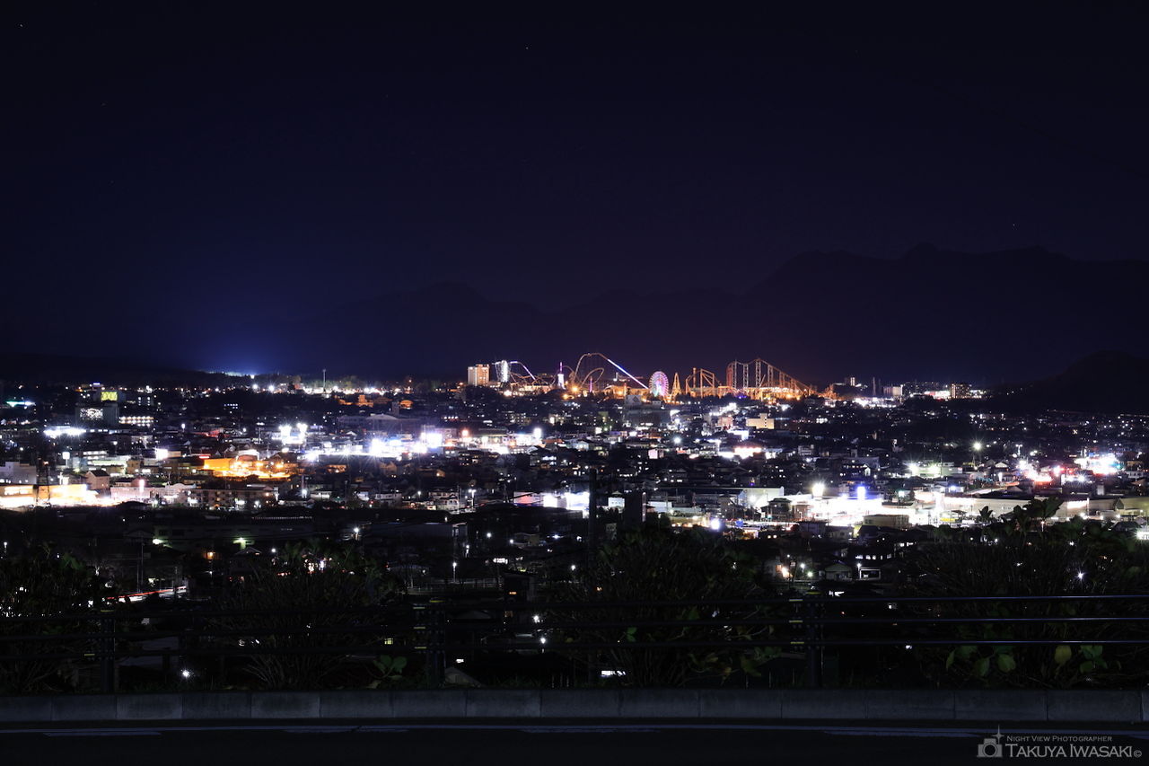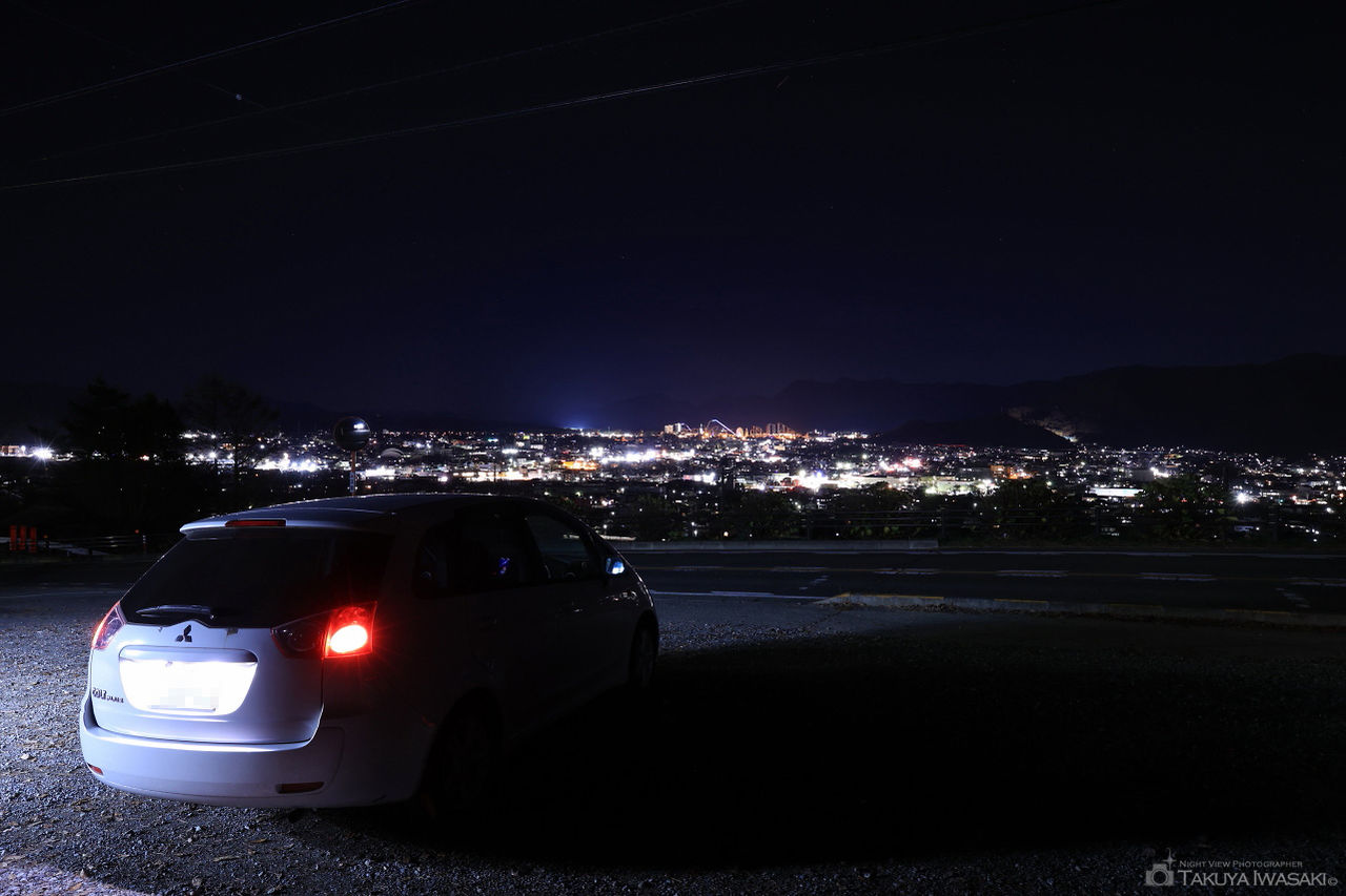 道路沿いにある夜景スポットで、車を停めて富士吉田市の夜景を観賞できます。遠くには富士急ハイランドも見渡せます。