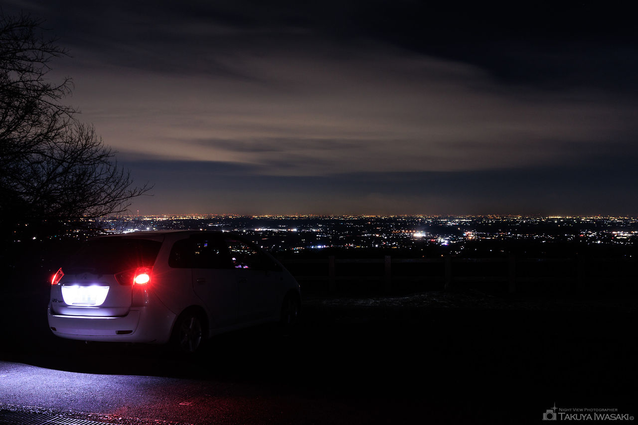 太平山の夜景と言えば神社の手前にある展望台が有名ですが、駐車場からも栃木市内の夜景を見渡せます。