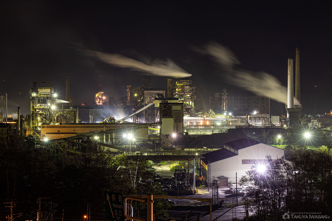 新日鐵住金を中心とした工場夜景が眺められる穴場スポット。白鳥大橋は一部しか見えませんが、工場夜景観賞・撮影がメインであれば訪問の価値があります。