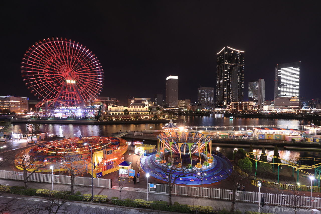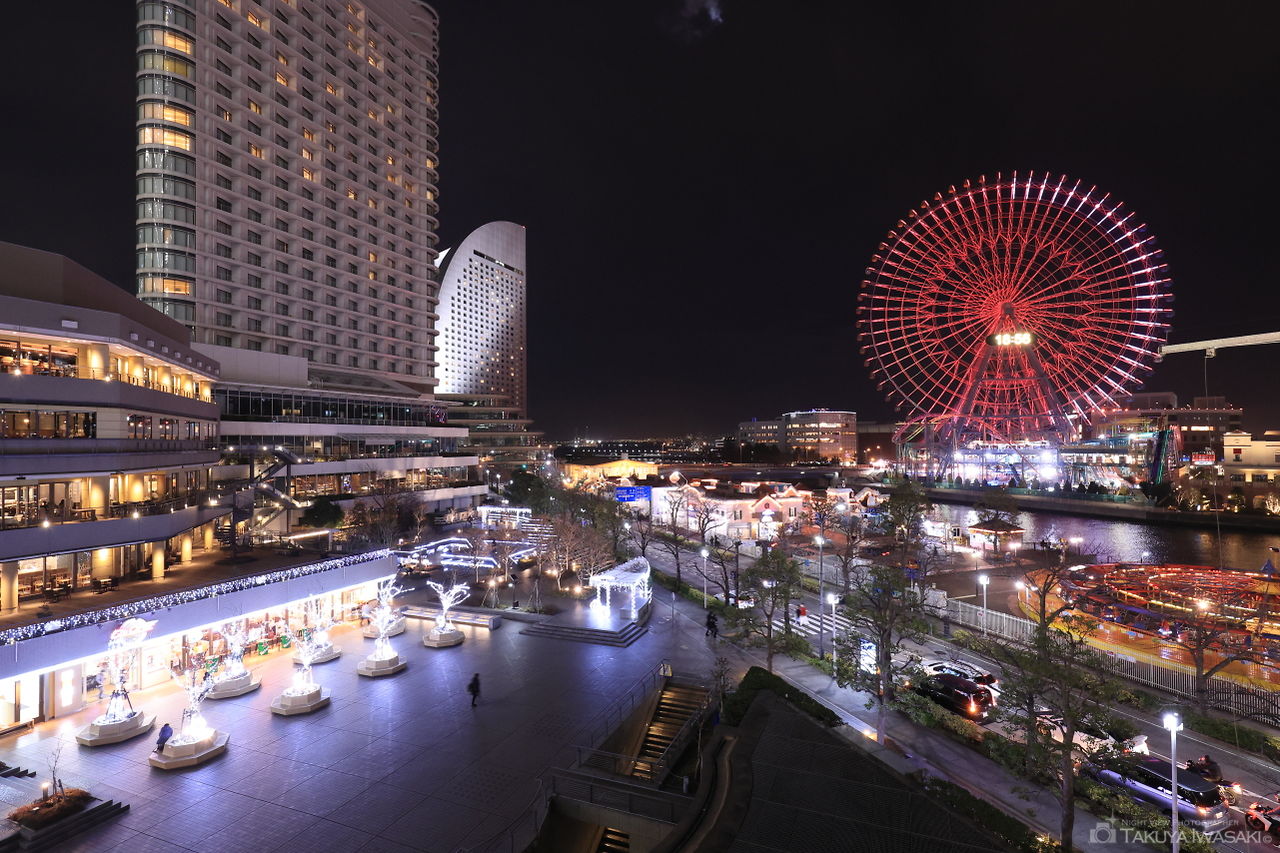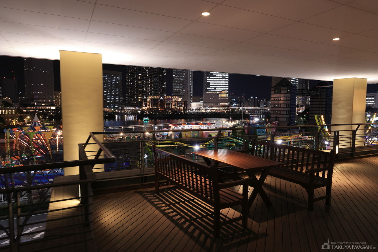 みなとみらい東急スクエア2はレストランやホテル、ショッピング施設が充実した商業ビルとなっており、デッキやレストランからはコスモワールドを中心とした夜景を眺められます。