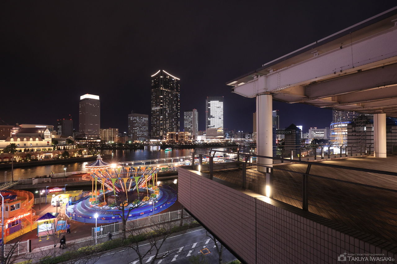 コスモワールドやザ・タワー横浜北仲方面を見渡せる穴場スポット。雰囲気も良く、周りを気にせずに夜景を楽しめます。