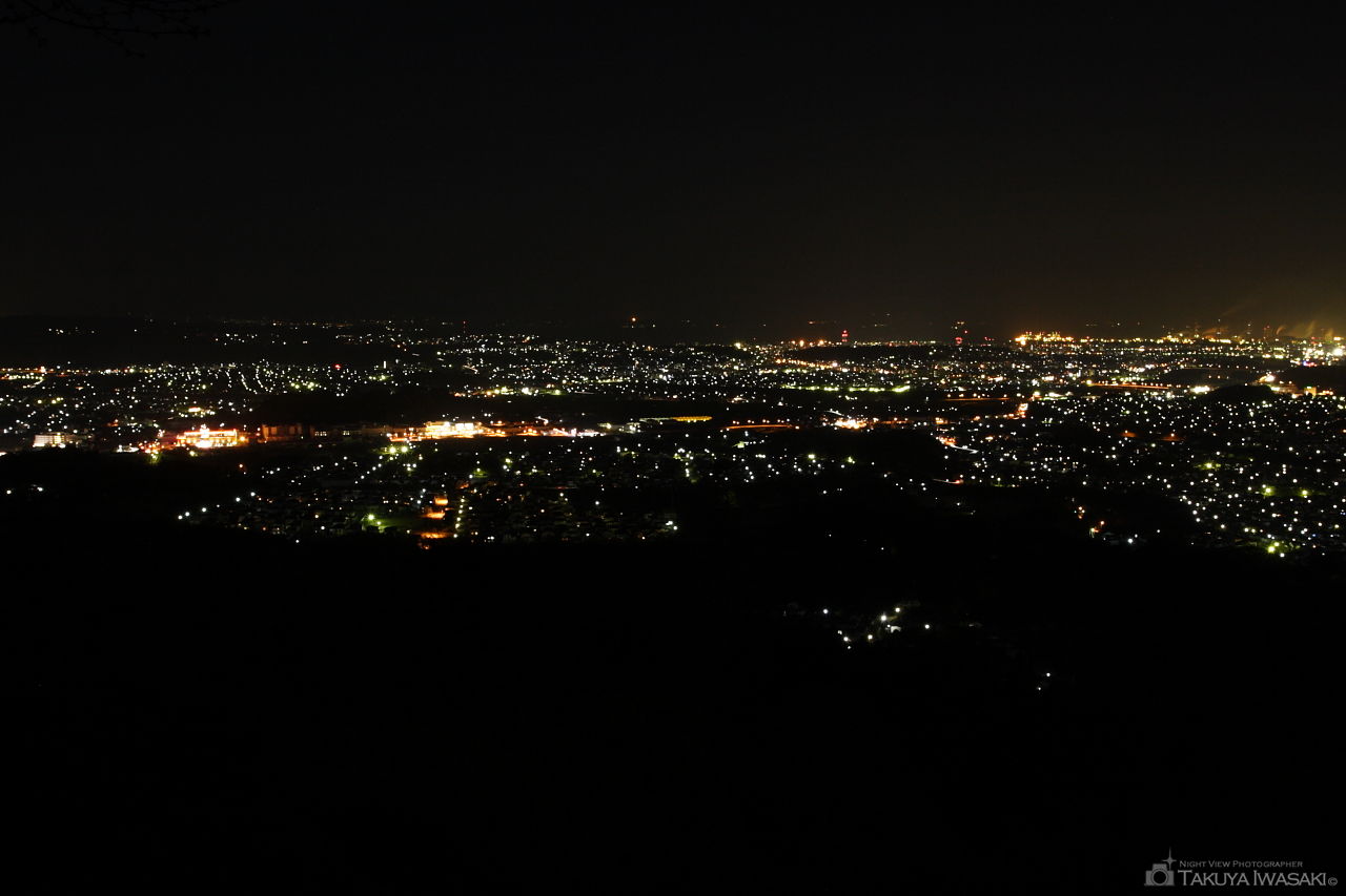 石垣原合戦で西軍に仕えた吉弘嘉兵衛統幸の陣所跡の公園がビューポイント。公園と駐車場手前の道路からは別府市内の夜景が見渡せます。