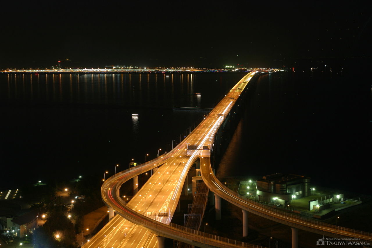 関西国際空港の北側に位置する展望ロビーからはライトアップされた滑走路、関空連絡橋を観賞できます。夜間は滑走路が宝石のように輝き、美しさに見惚れてしまいます。