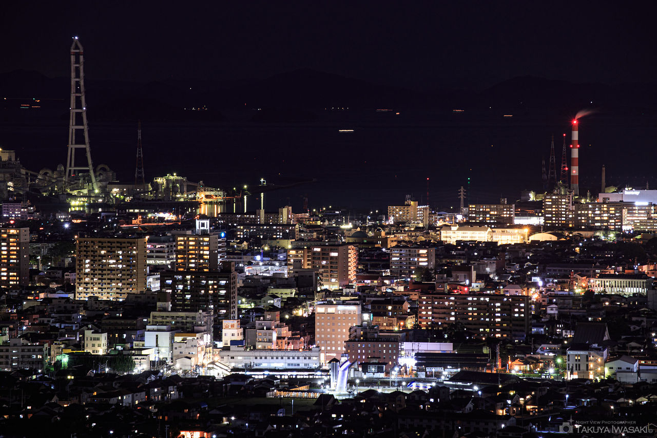 金子山と呼ばれる丘陵地帯に整備された公園。2ヶ所の展望台がありますが、第1展望台からは住友化学工場を中心に北方向の夜景が楽しめます。