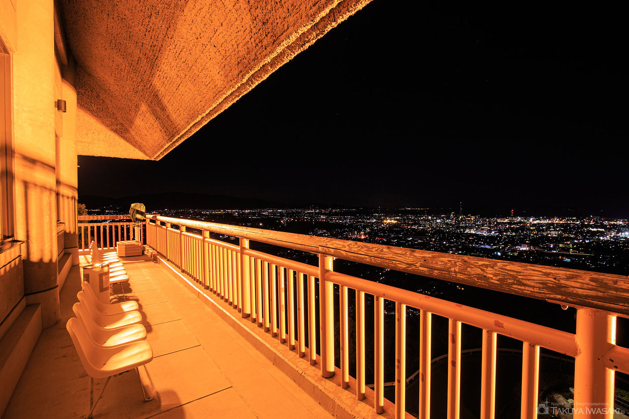 四季を通じて自然を楽しめる市民の森は営業時間が限られていますが、時期によって21時または22時まで営業しているため、夜景も楽しめます。手前にある展望広場からでも夜景が楽しめますが、西条市考古歴史館の2階と3階の屋外に展望台があり、ベンチに座って西条市の夜景が楽しめます。視界は広く、特に西方向のトワイライトタイムは絶景です。