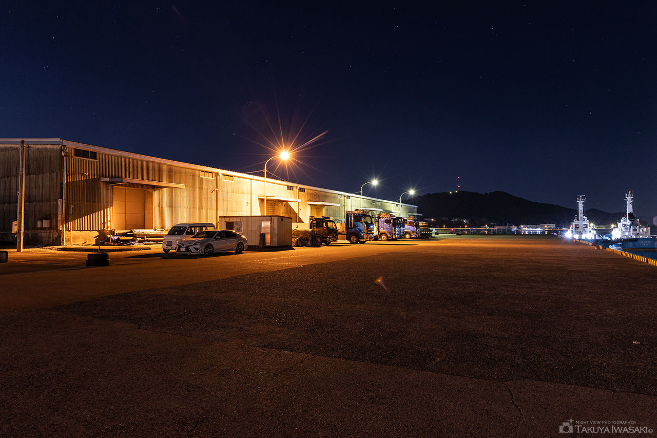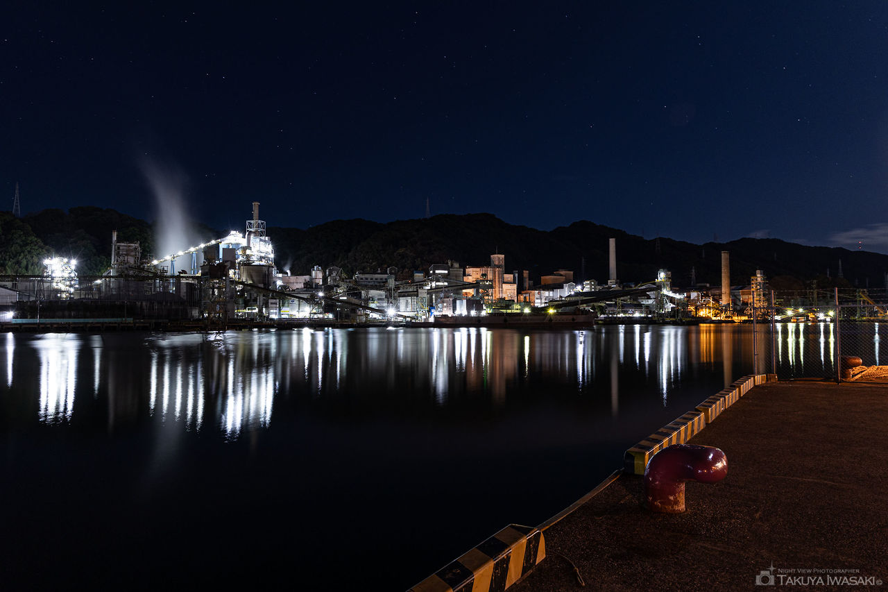高知と言えば五台山などの高台から見下ろす夜景スポットが有名ですが、桟橋通6丁目にある埠頭からは、対岸に太平洋セメントの工場が見渡せます。工場との距離が近く、標準ズームレンズで撮影しても、それなりに迫力ある工場夜景写真が撮れます。