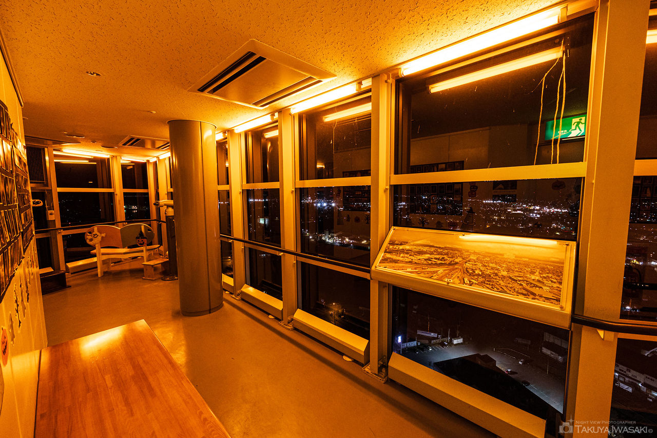 全高143m、高さ100mに位置する展望台からは秋田市内を中心に360度の夜景を楽しめます。展望タワーでは珍しく無料開放されているのも特徴です。