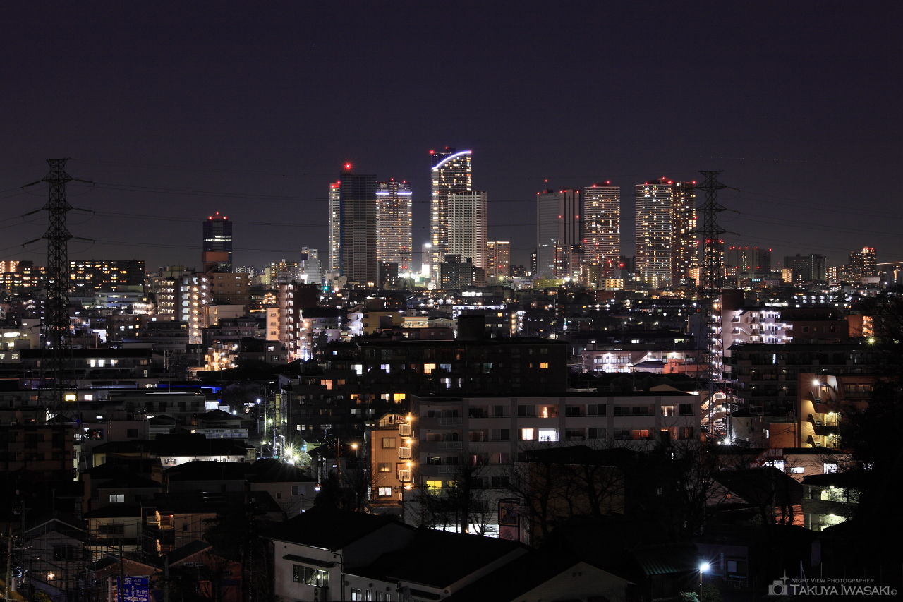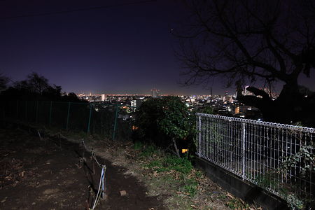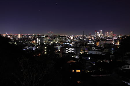 たちばな古代の丘緑地から北に進んだ場所に視界が開けたポイントがあり、中原区・武蔵小杉を中心とした夜景が広がります。