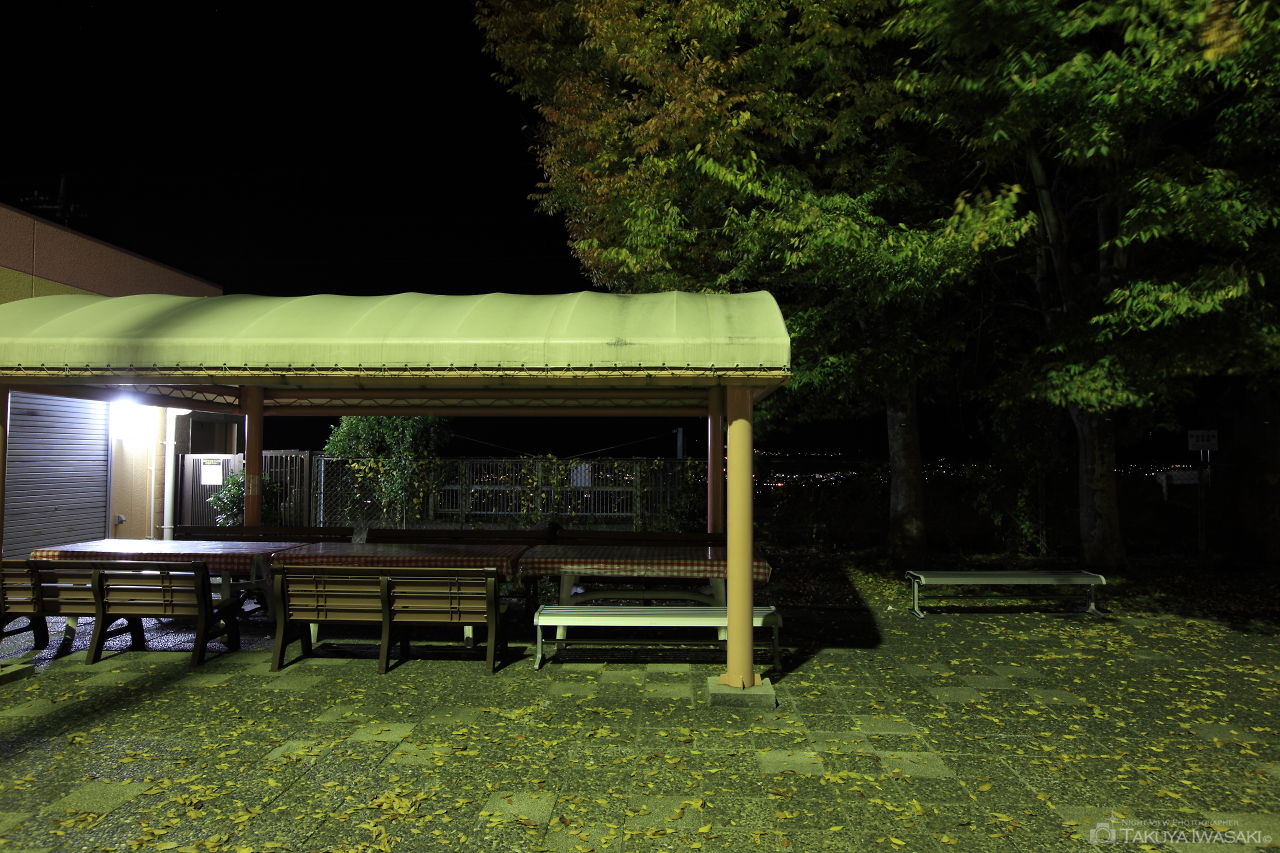 上り線のパーキングエリアにある展望台の周囲からは山梨市内を中心とした夜景を観賞できます。夜間は釈迦堂遺跡博物館へ続く道が閉鎖されています。