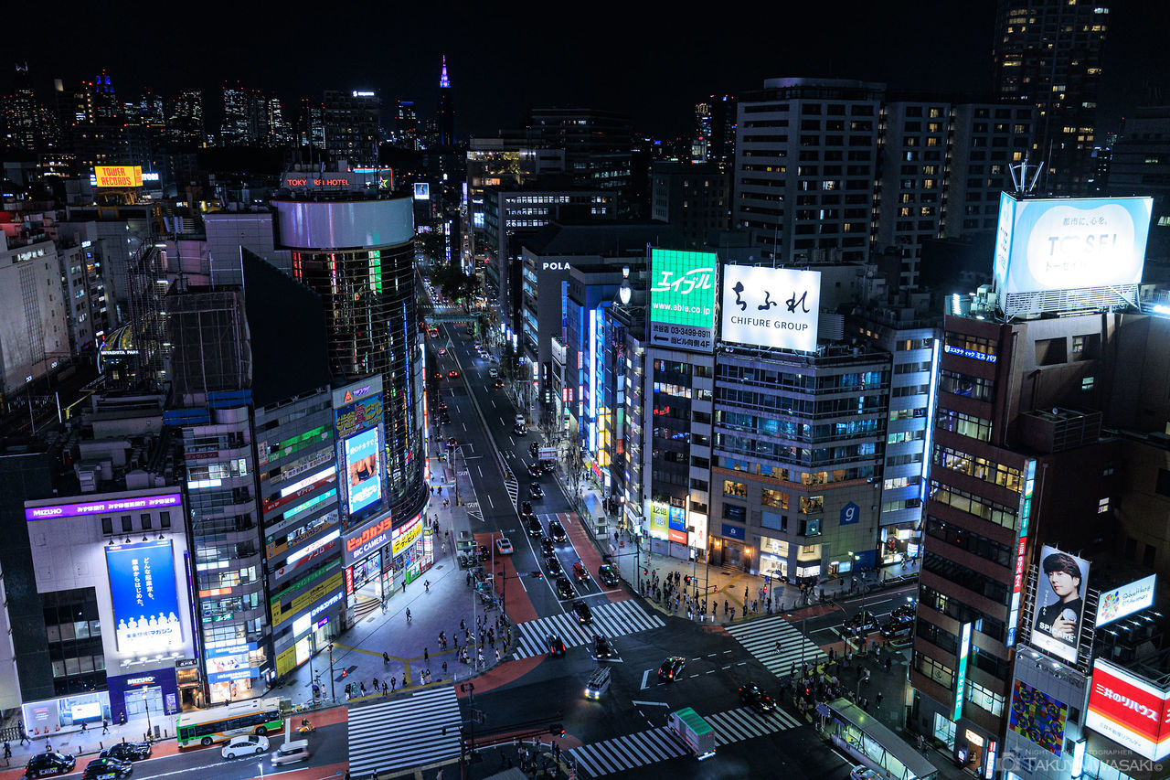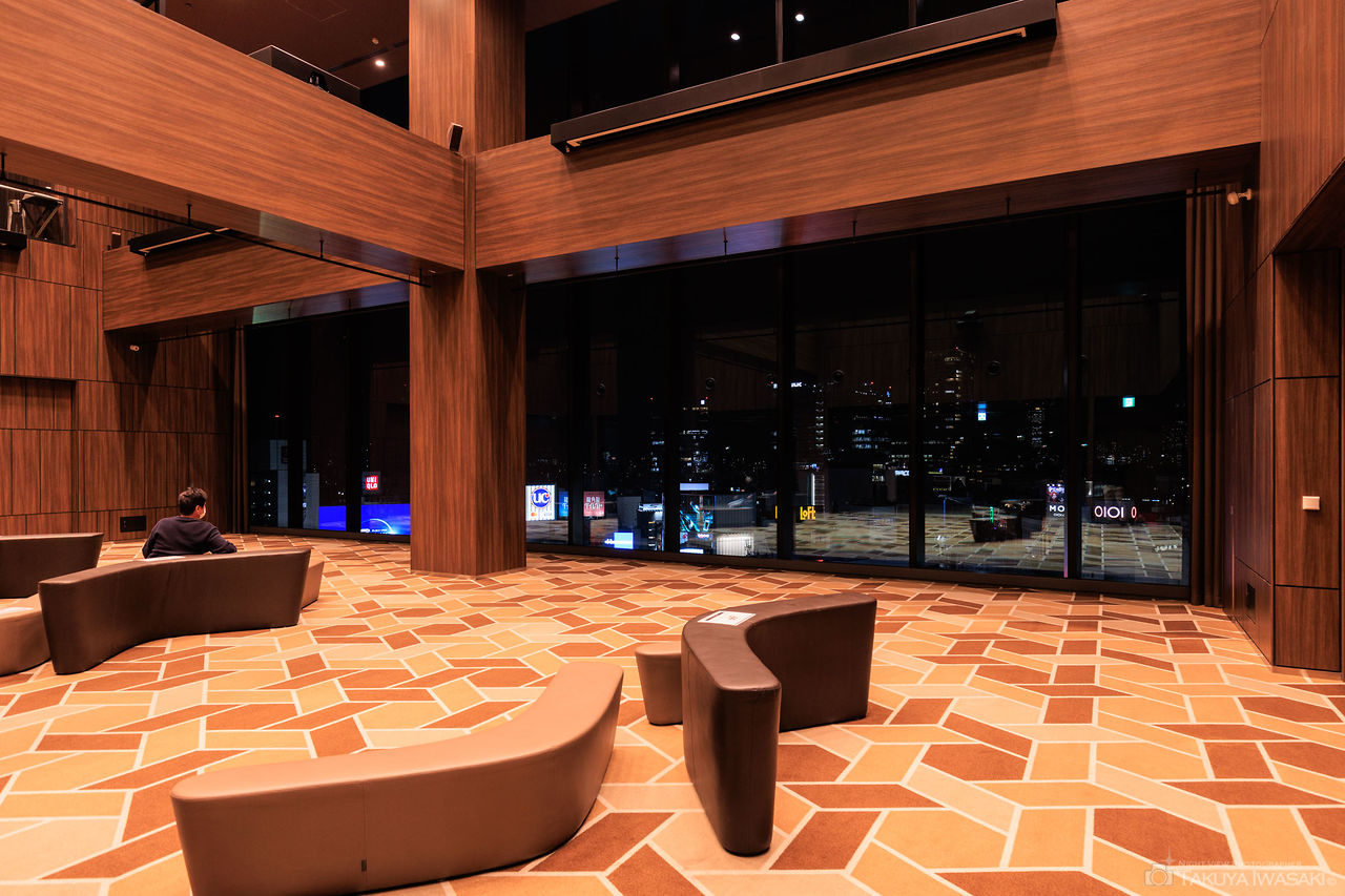 渋谷で都内最大級の展望施設「SHIBUYA SKY」が開業し、渋谷に限らず東京を代表する夜景スポットの1つとなっていますが、渋谷スクランブルスクエアの12Fにはイベント用のスペースがあり、イベントが開催されていない時は展望ロビーとして開放されています。高さはそれほどありませんが、渋谷駅や宮益坂方面の夜景が見渡せます。ガラスに断熱シートが貼られているようで、やや夜景が暗い感じになりますが、雰囲気は良く、手軽に夜景を楽しめます。なお、エレベーターホールの横にはセルリアンタワーが見渡せるスペースもあるのでお見逃しなく。