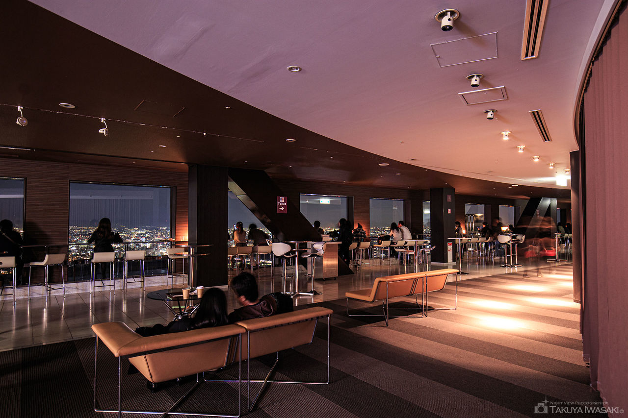 地上170mの高さを誇る大阪唯一の屋上展望台からは梅田周辺を中心に360度のパノラマ夜景を楽しむ事ができます。特に大阪ベイエリアの夕景は必見で、天気の良い日は天保山の大観覧車まで望むことができ、平日・休日を問わず観光客が多いのも納得です。もちろん展望ロビーからも夜景を観賞できるので寒い季節でも安心です。