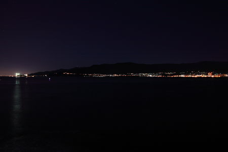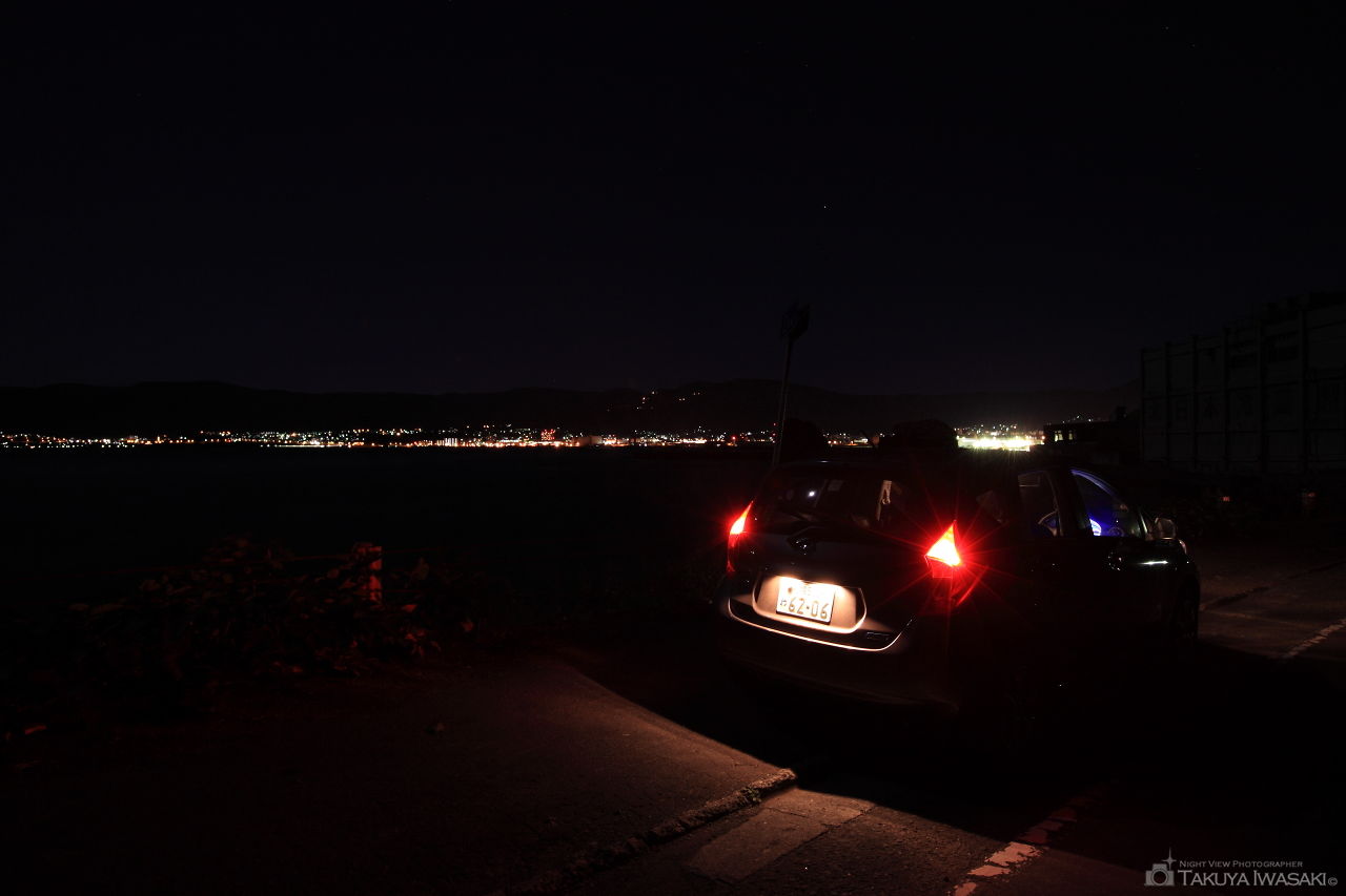 旧高島トンネルの高島側の道路沿いからは、対岸の小樽市街地方面の夜景を車内から眺められます。
