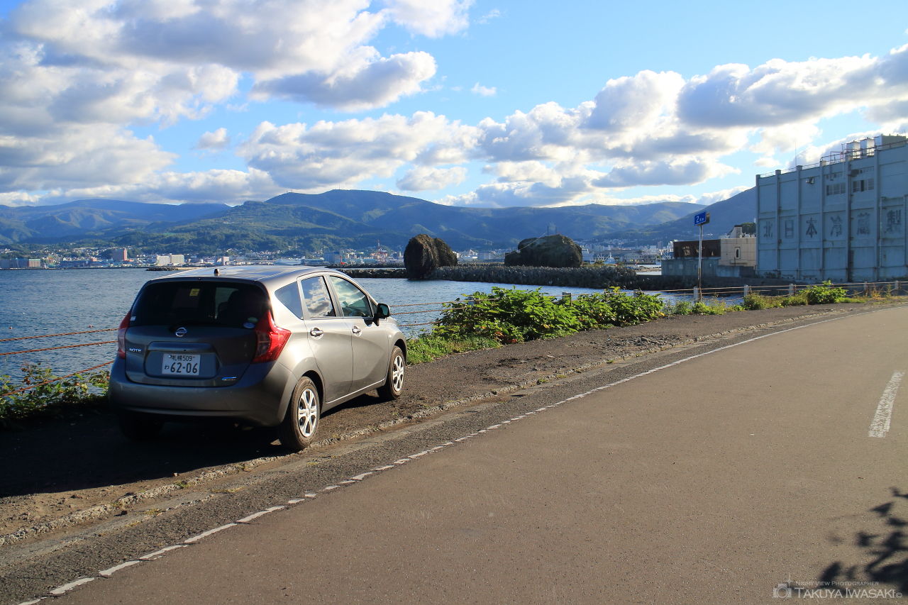 公園内の車道沿いには小樽市街地の視界が開けた場所があり、車を停車させて車内から小樽市内の夜景を観賞できます。