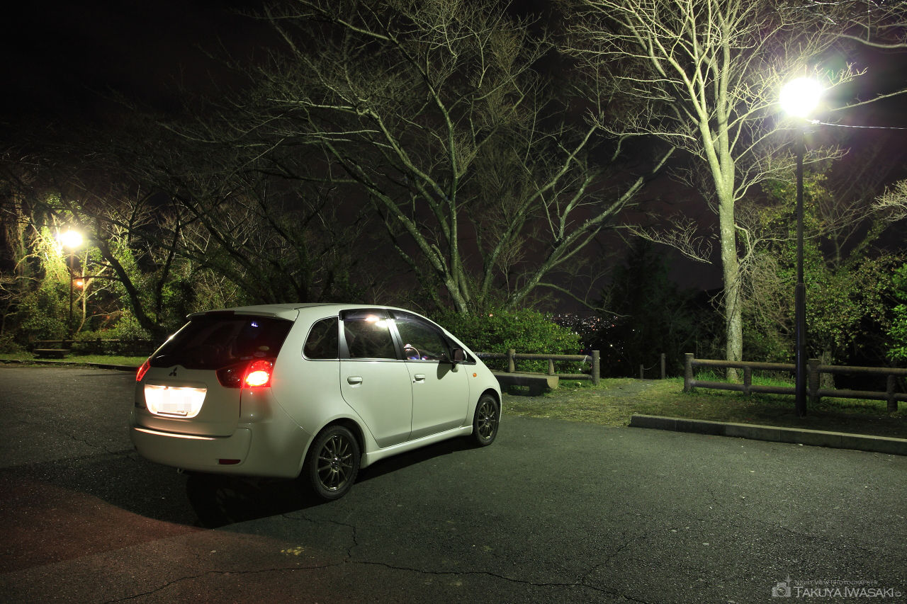 標高358mの石巻山のふもとに駐車場があり、目の前に豊橋市の夜景が広がります。