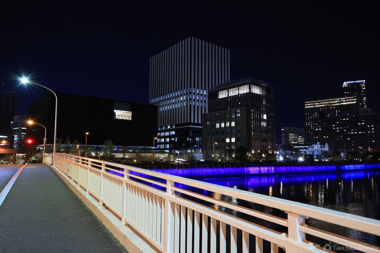 浪速の名橋50選にも選ばれている堂島川にかかる橋。歩道からはライトアップされた堂島大橋や中之島エリアの高層ビルを中心とした夜景を観賞できます。