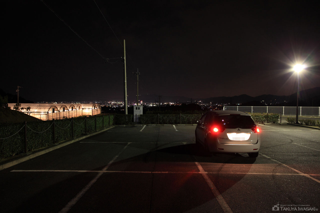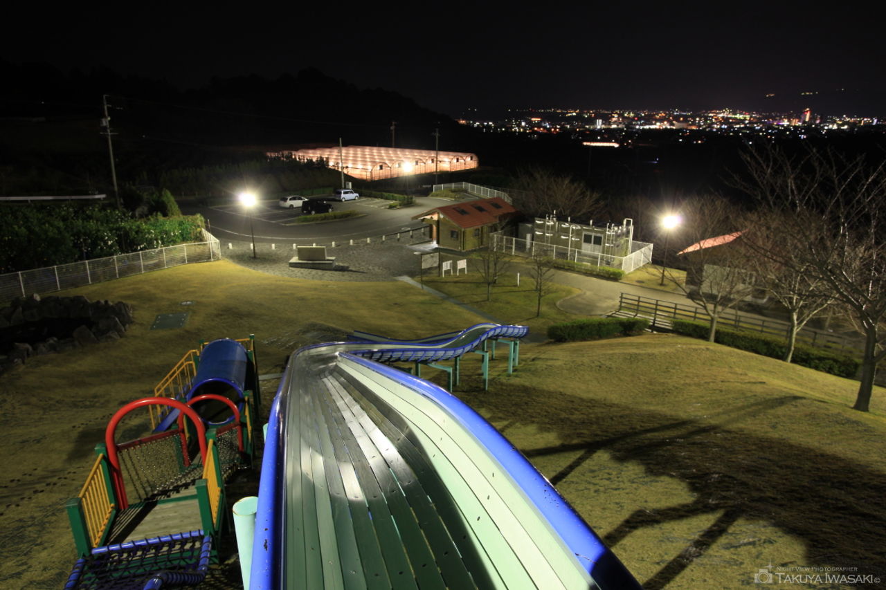 標高94mの小高い山に展望台があり、豊橋市方面と三河湾方面の夜景を眺められます。