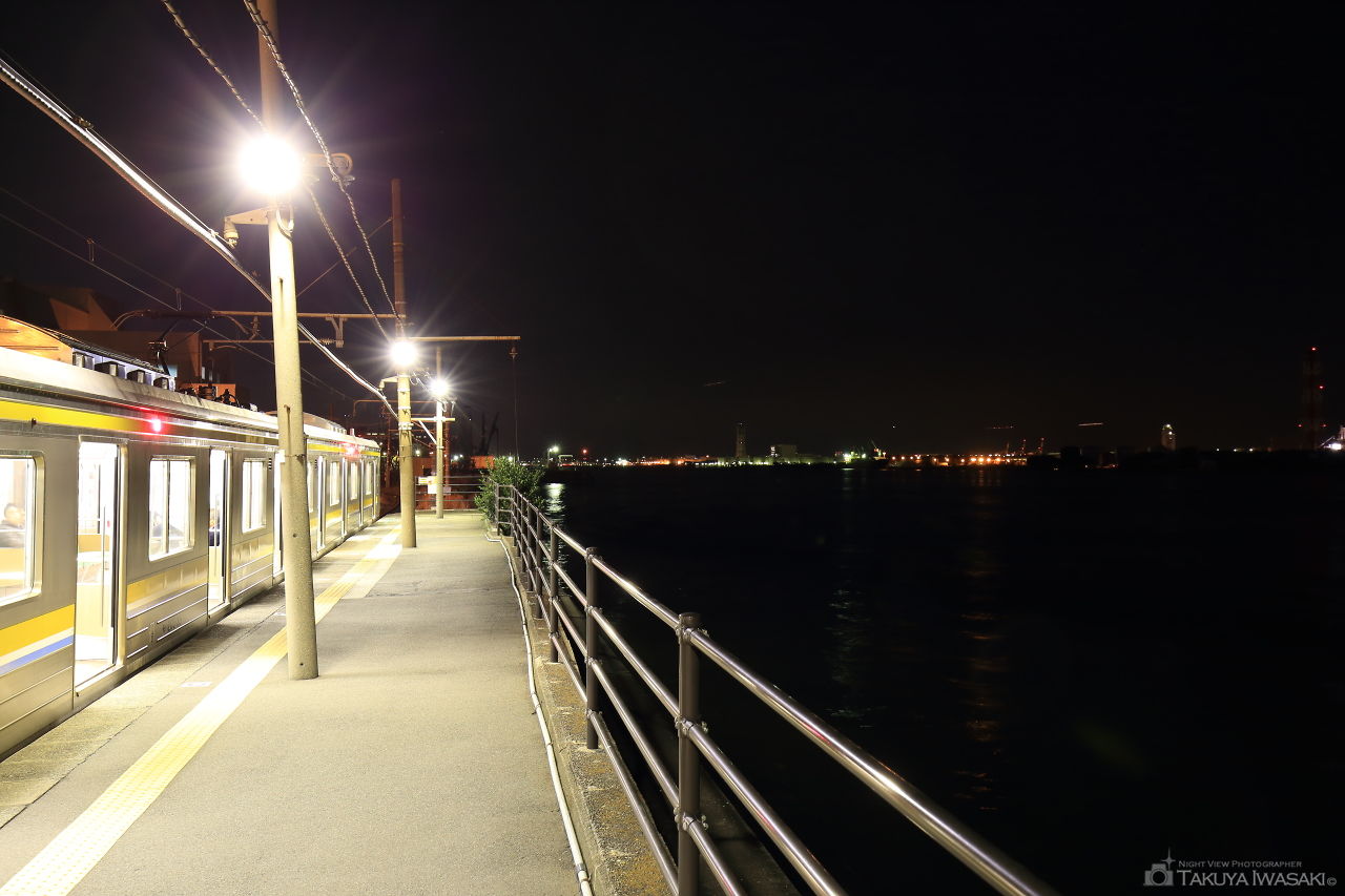 鶴見つばさ橋のライトアップを真横から眺められる唯一とも言える夜景スポット。海芝浦駅に隣接した場所にあり、海辺の潮風を感じながら夜景を観賞できます。