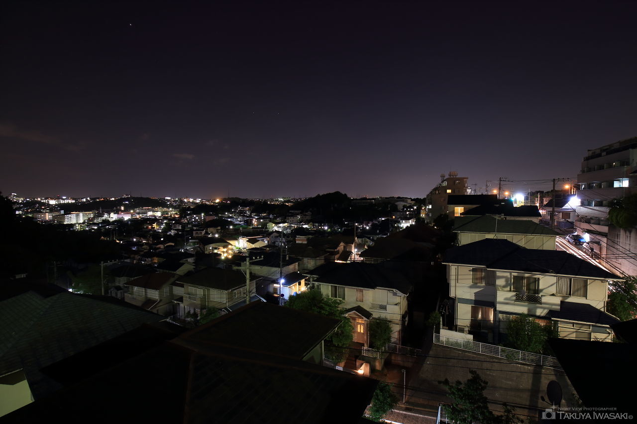 住宅街の中にある歩道橋がビューポイント。遠くに戸塚駅方面の夜景が見渡せます。日中は富士山が見える日もあるようです。