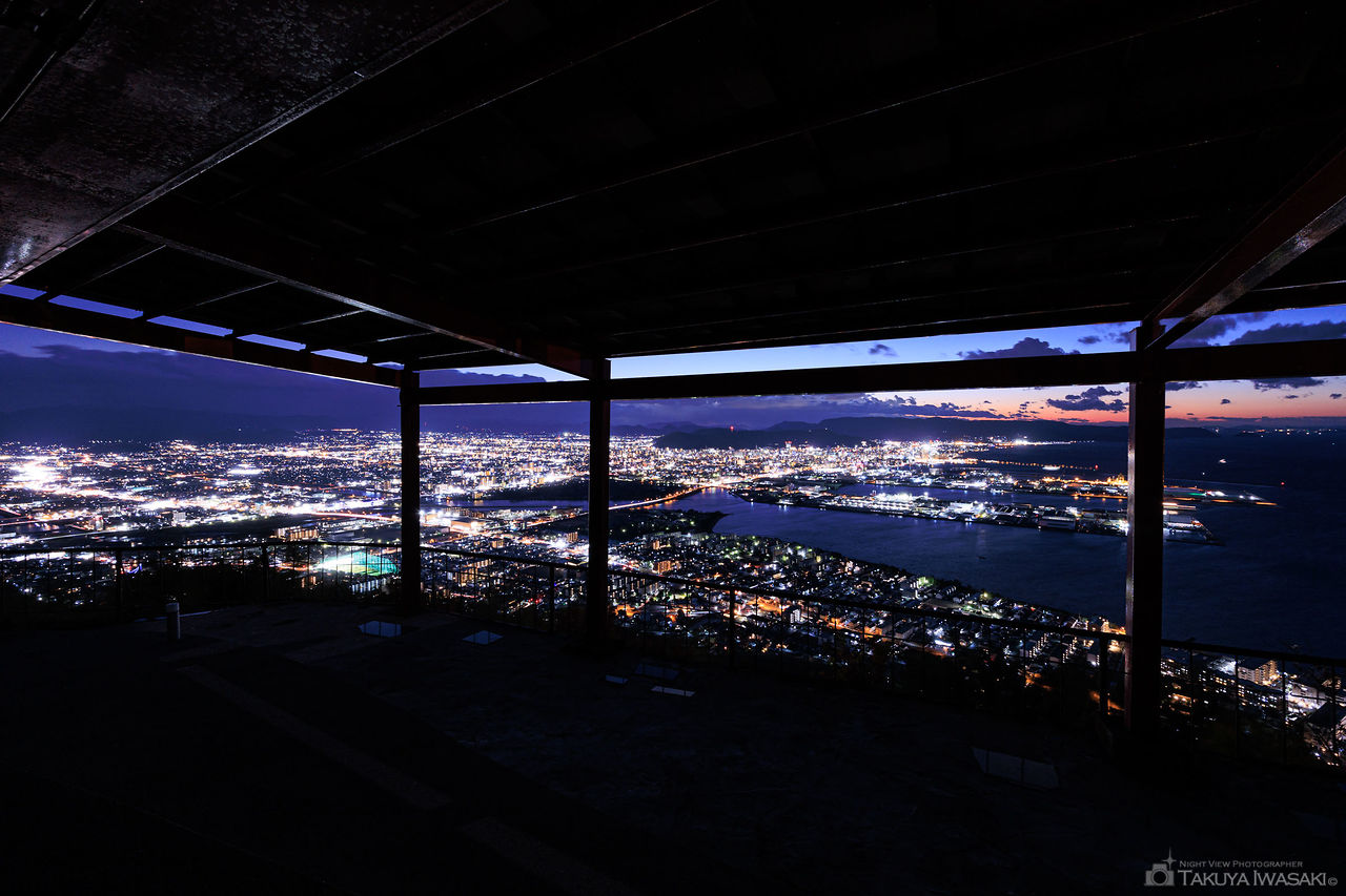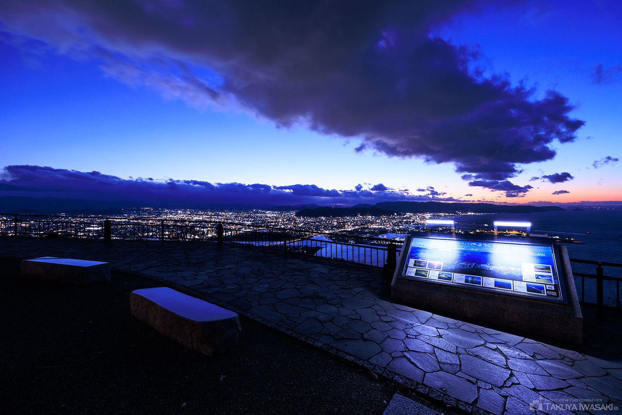 展望台からは高松港を中心とした夜景を観賞でき、特に夕方から日没後にかけての時間帯が最も美しさを感じさせます。光量は地方都市とは思えない程多く、四国でも最大級の光量があると思われます。