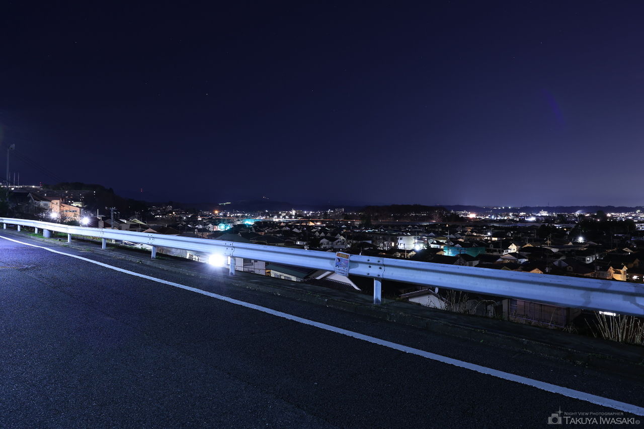 丘陵地帯にある横川町は、横川つつじ公園など眺望の優れた場所があり、公園以外にも夜景を楽しめるポイントがあります。ここで紹介しているポイントは公園の東側にあり、道路からは横川町の夜景を広範囲に見渡せます。周囲は街灯もあり、夜間でも安心して訪問できる雰囲気です。なお、付近には住宅があるため、夜景観賞目的で訪れる際は、くれぐれもマナーを守って頂くようお願いします。