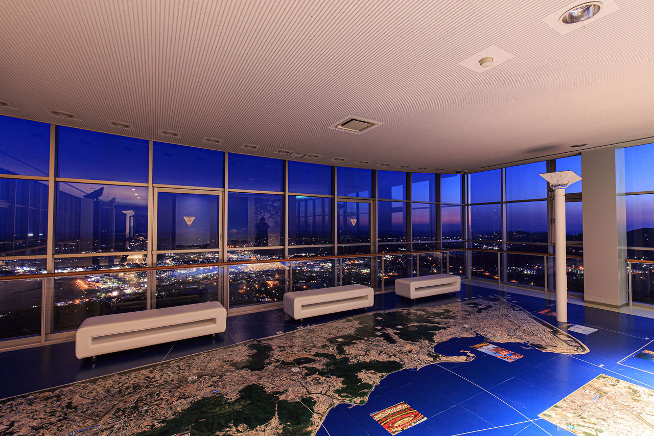 標高250mの蔵王山に大きな展望台があり、屋外テラスと屋内から展望できます。夜景は豊橋市方面と田原町方面が中心になり、光量も十分にあり見応えのある夜景が楽しめます。展望台はスロープも含めライトアップされており、雰囲気にも優れていることからデートスポットとしても活用できそうです。